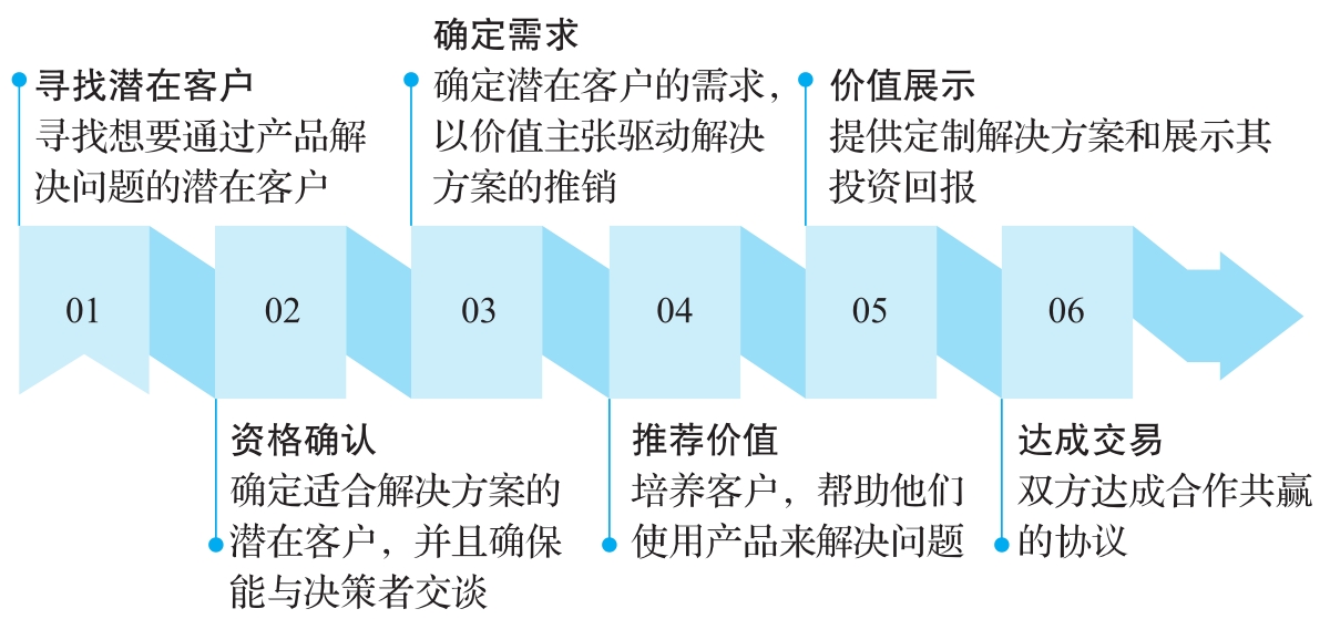 成功的解决方案销售遵循一个结构化流程,通常包含以下六个阶段: