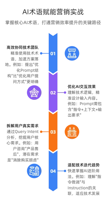 对营销人员而言,掌握这些术语并非单纯的“专业背书”,更能直接赋能AI营销实操,提升工作效率与效果: