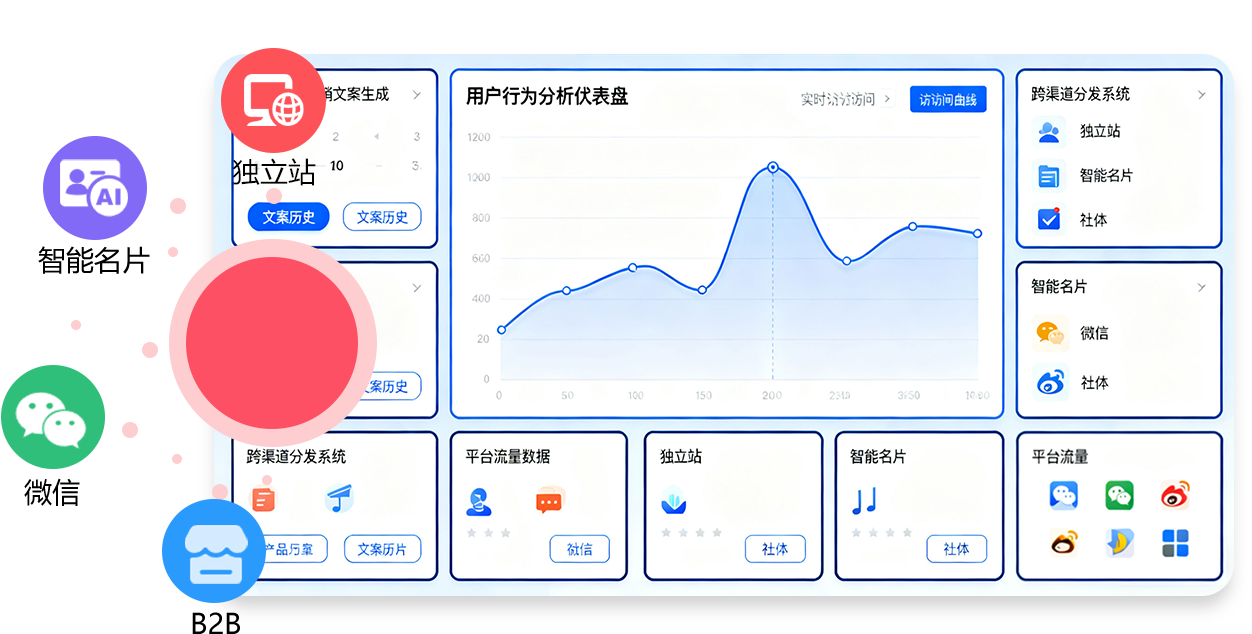 跨渠道智能分发系统:一键适配智能建站、智能名片、微信、社媒等平台,SEO/GEO服务帮助企业在搜索引擎和AI平台获取客户。