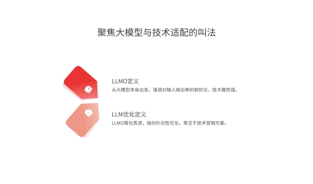 - LLMO(Large Language Model Optimization):从大模型本身出发,强调针对大型语言模型的输入输出机制进行优化,不仅关注内容呈现,还涉及对模型训练素材、响应逻辑的适配,技术属性更强。