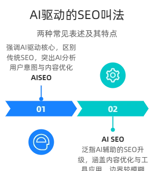 - AISEO(AI-driven Search Engine Optimization):营销领域最常用的别称之一,强调“AI驱动”的核心特质,区别于传统人工优化的SEO模式,突出通过AI技术分析用户意图、优化内容结构的策略逻辑。